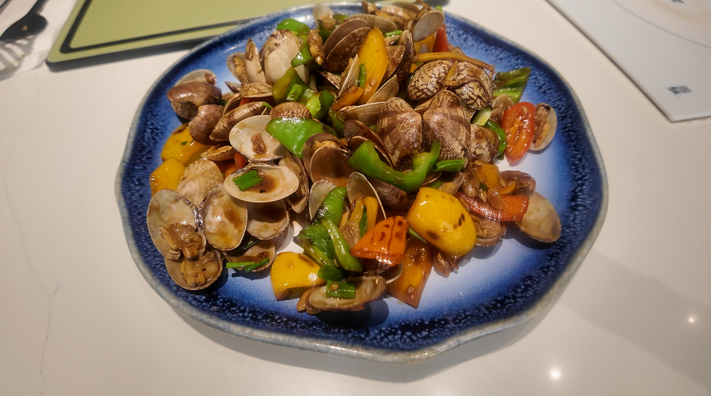 Heat the pan and add oil. Stir-fry the ginger and garlic until fragrant. Add the diced bell peppers and stir-fry until they are slightly soft. Pour in the clams, add a little salt, cooking wine, light soy sauce and oyster sauce, and stir-fry for 2-3 minutes. Sprinkle with chopped scallions to enhance the aroma before serving.