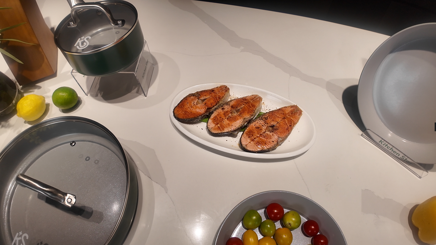 Heat the pan with butter (or olive oil), add the salmon, and fry for 2-3 minutes until one side turns golden brown. Flip it over and fry for another 2 minutes (adjust the time according to the thickness to ensure the interior is fully cooked).